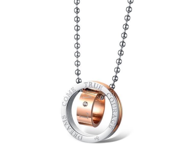 リング中央のキュービックジルコニアがアクセントの2連リングネックレス。
