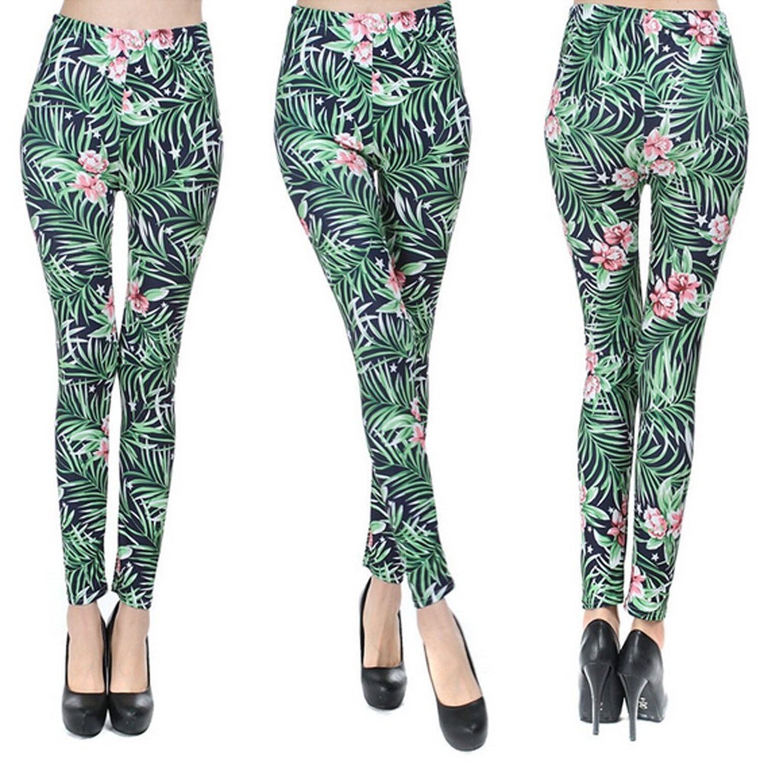 ボタニカル フラワー & スター 柄 ストレッチ レギンス 10分 丈 レディース WA