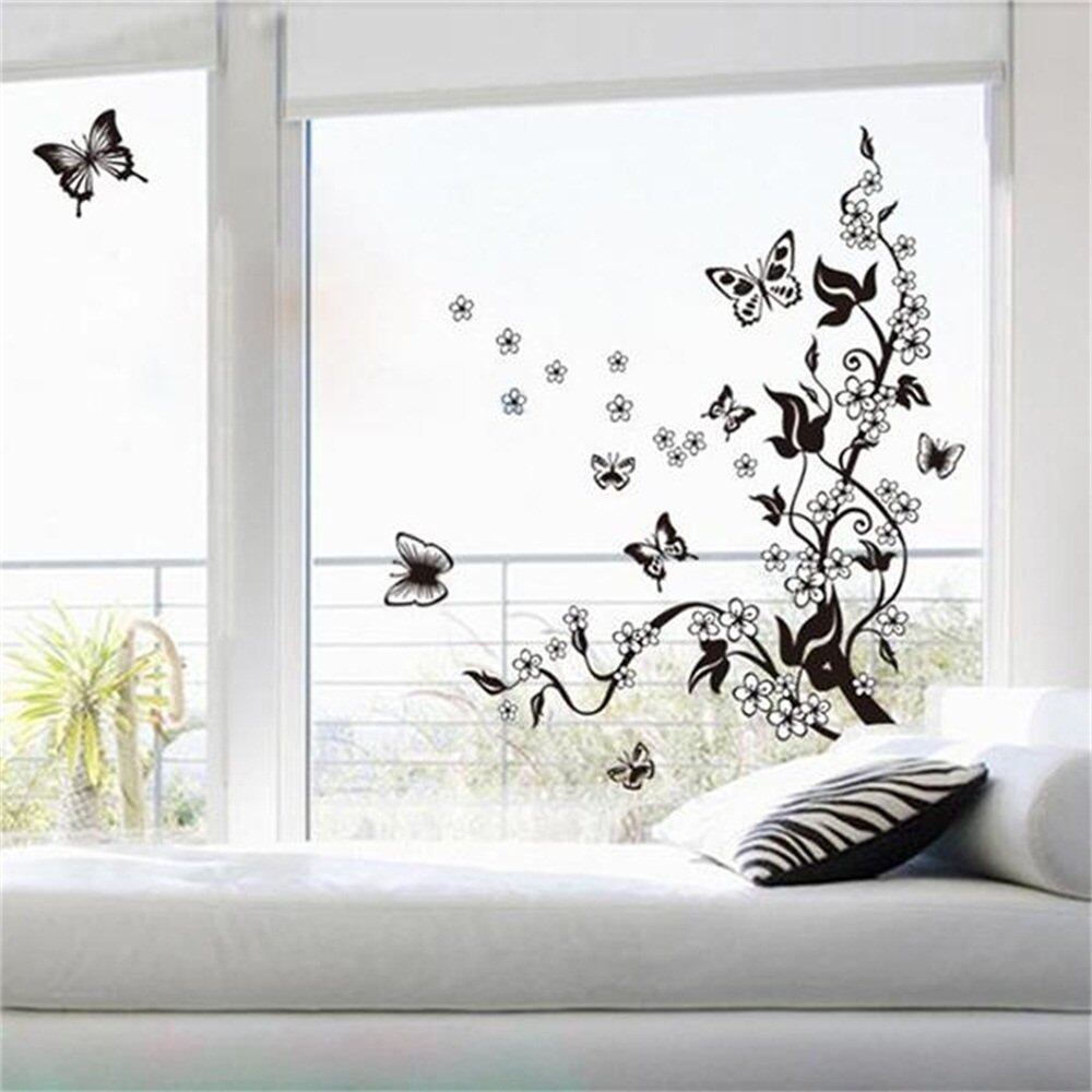 DIYフラワー &バタフライ ブラック ツリーアート インテリアホーム ステッカー リムーバブル PVC壁飾り WA