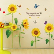 ウォールステッカー ヒマワリ 夏 花 フラワー カラフル 蝶々 向日葵 壁紙シール ウォールシール WA
