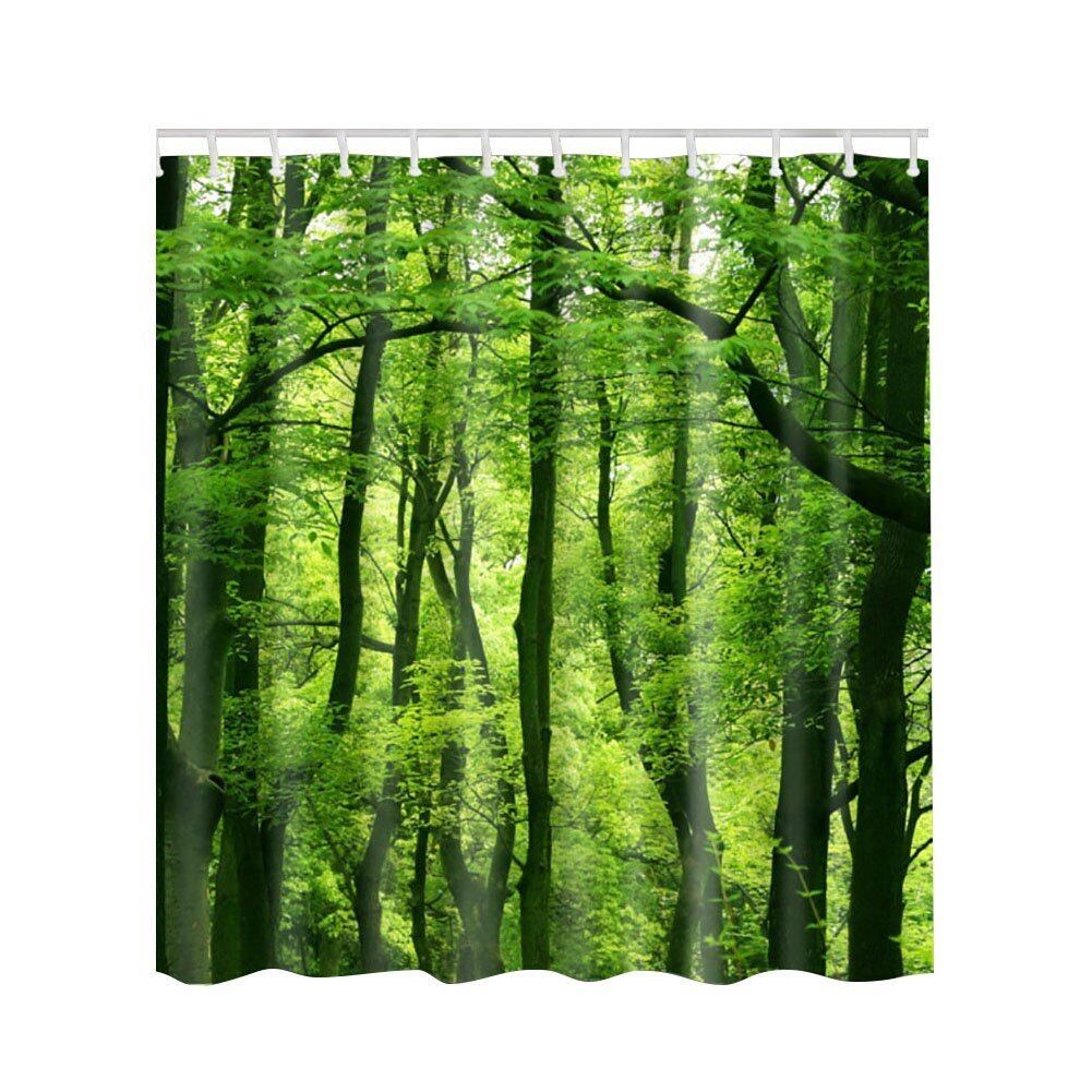 Ochine シャワーカーテン 防水 防カビ加工 カーテン お風呂 簡単なデザイン カラフルなツリー/グリーンツリープリント バスルーム 150×180cm プラスチックフック付属