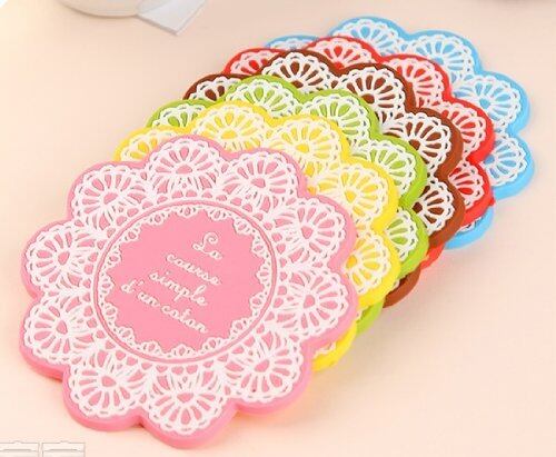 [Neustadt] アンティークレース模様が おしゃれ カラフル お花型 シリコン製 コースター 6色セット おもてなしにピッタリ