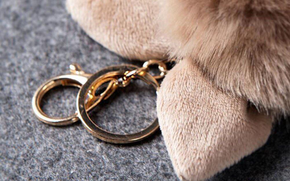 ウサギの耳形 かわいい ふわふわ フェイクファー ポンポン キーホルダー キーチェーン ペンダント バッグチャーム