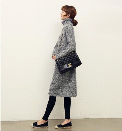 [韓国 ファッション]ハイネックのロングスタイルニットワンピ♪